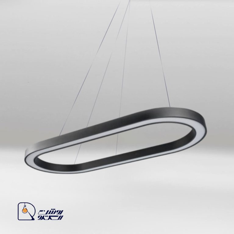 آویز طرح بیضی مدرن که در تصویر سمت راست مشاهده میشود، نمونهای شاخص از ترکیب مهندسی دقیق، طراحی مینیمال و فناوری پیشرفته LED است. این محصول با خطوط نرم، فرم کشیده و نور یکنواخت، جلوهای خاص و لوکس به محیطهای داخلی میبخشد.